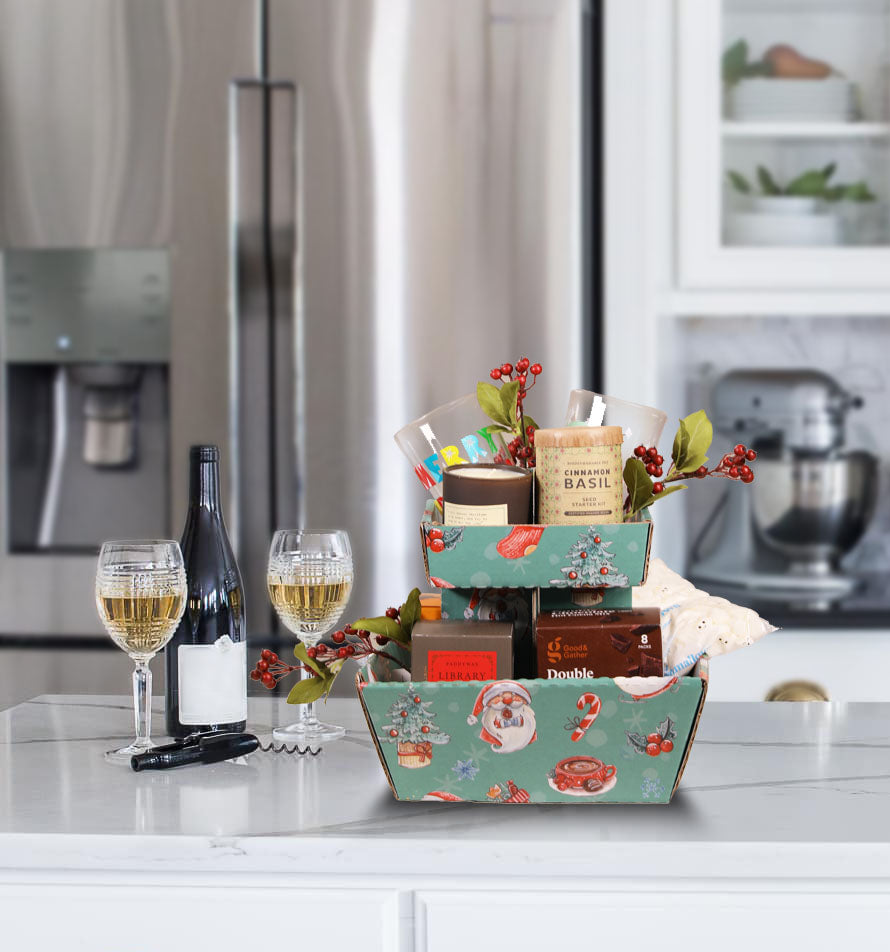 Gone are the days of wicker baskets and piles of filler. This patented design features elevated levels so every gift shines. It's quick to assemble, easy to fill, and stunning to present. Made from sustainable, recycled materials and designed with reuse in mind, The Dandy Basket is as smart as it is stylish.